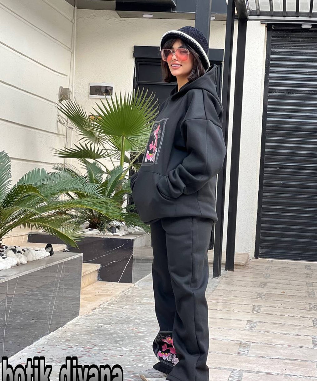 ست هودی شلوار مدل پلنگ صورتی (2259)