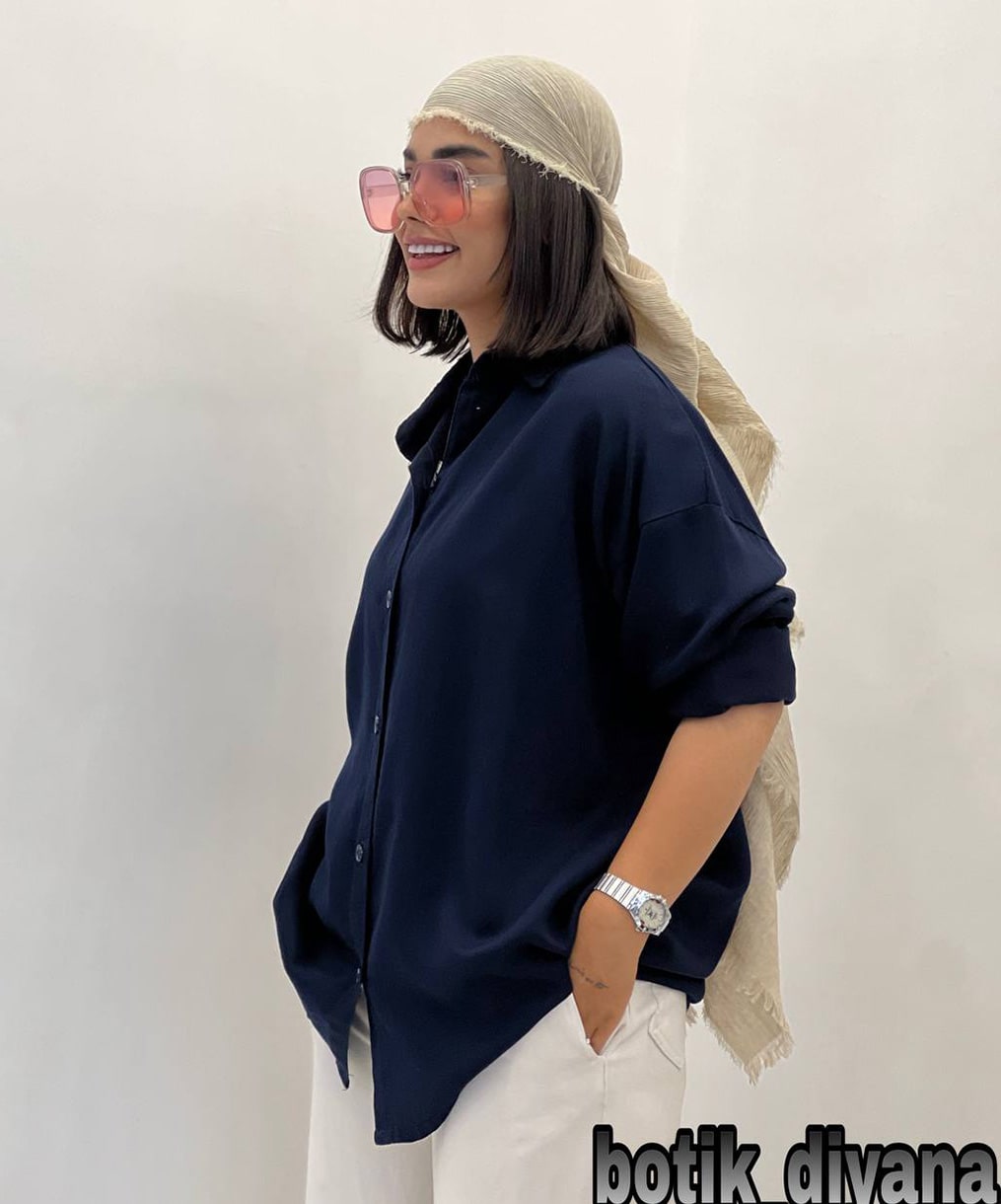 شومیز کتان ترک بغل دکمه دار زنانه(1021)