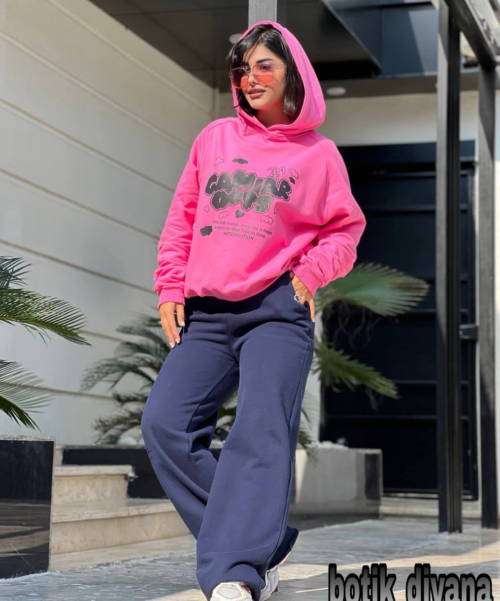 ست هودی شلوار مدل پلنگ صورتی (2259)
